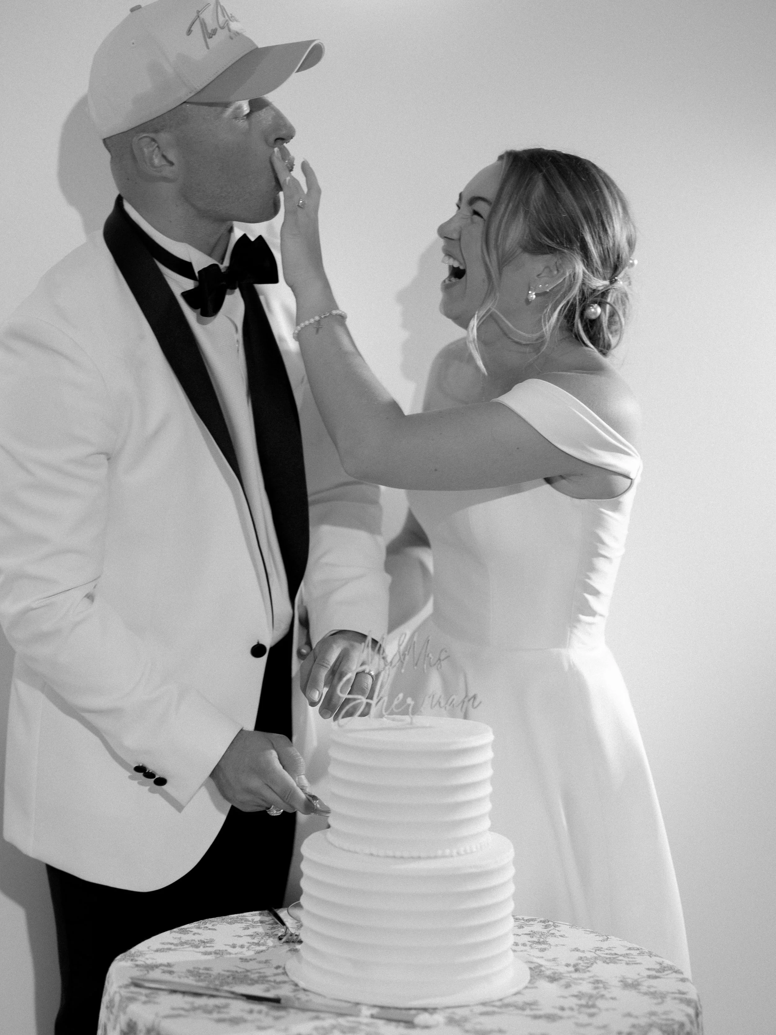 The festivities continued at The Grand Lady, a stunning historic venue blending Southern charm with modern flair. White florals and soft blue accents woven throughout, and the glow of candles complimenting the beaming smiles all around. The couple and their wedding party soon entered the reception space with incredible energy, taking things up a notch! As teary eyed toasts wrapped up, and the sun began to set, the celebration kicked into high gear with an unforgettable party. The bride’s friend, DJ Iman, kept the dance floor buzzing, while guests indulged in an ice cream sandwich cart from the Baked Bear. From heartfelt moments to high-energy revelry, this wedding was a perfect reflection of who Anna and James are as people. They love so deeply and beautifully, this day was no different!
